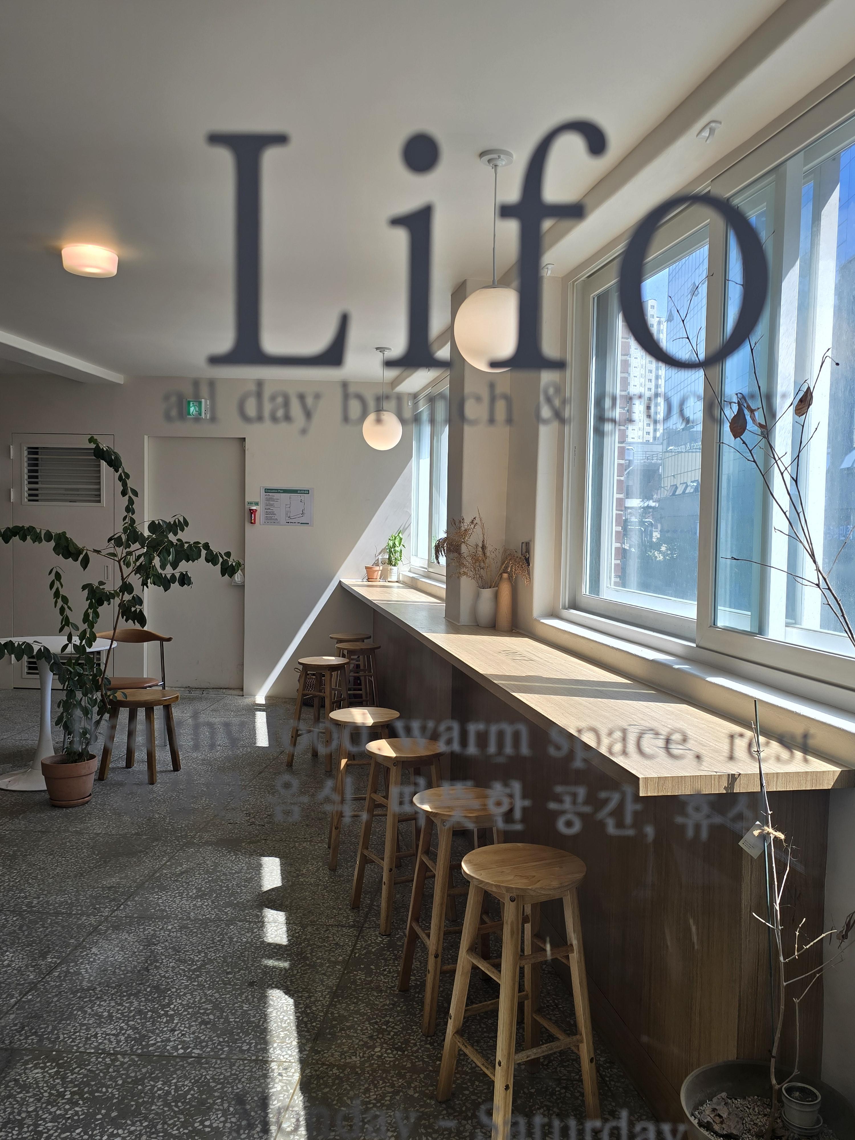 * 처음엔 위치를 못찾으실 수 있습니다. 다른 가게들처럼 화려하거나 분명한 상호가 없거든요. 투박하고 소박하게 2층 창문에 붙어 있습니다. 'Lifo'라고~~