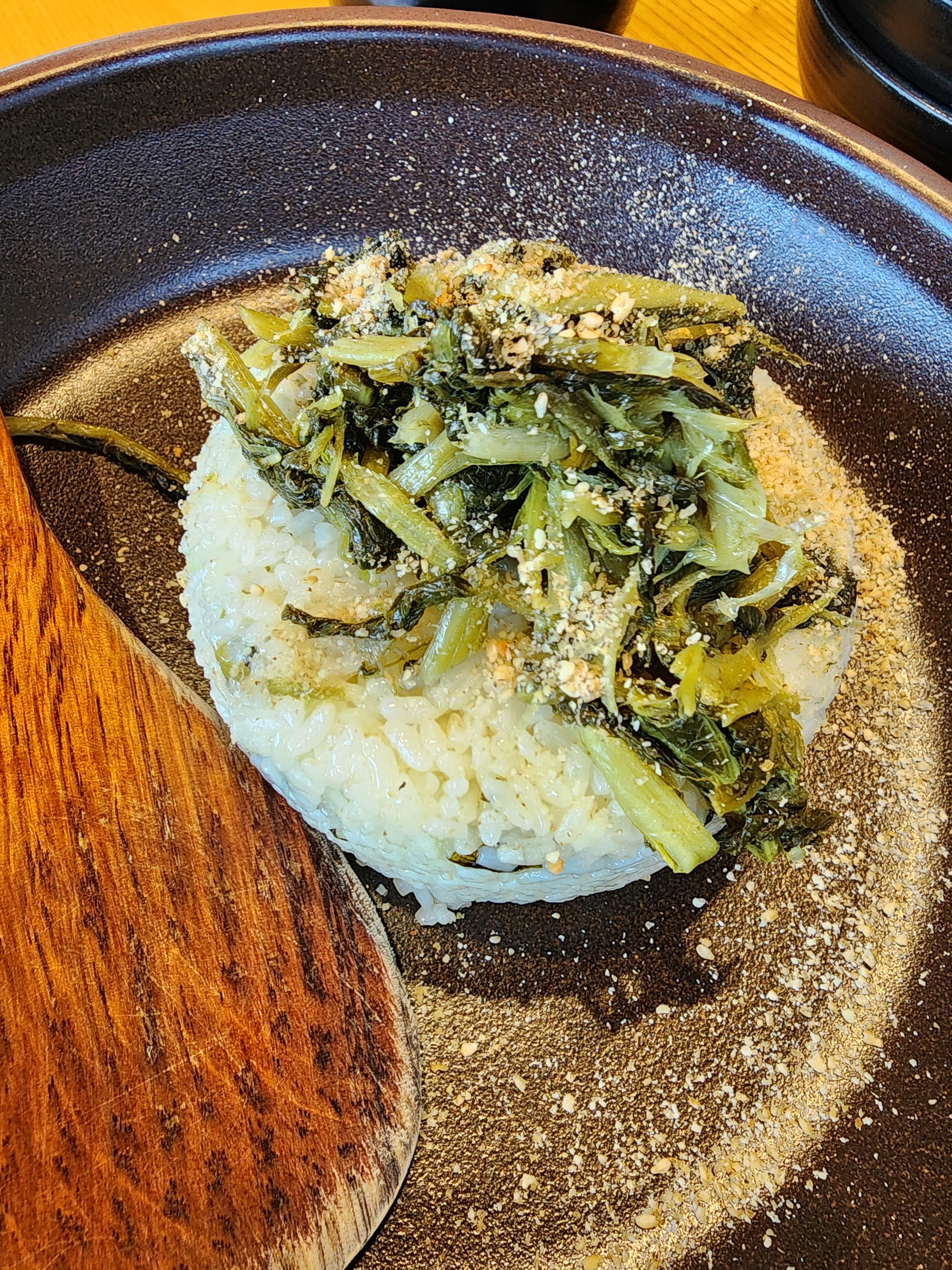 가성비가 좋고, 손님 접대하기가 좋아 자주 들리는 울 동네 맛집 엄마의 봄날!! 오픈시간에 가깝게 갔음에도 불구하고 오늘도 웨이팅해야 했어요. 오늘은 멀리서 오신 이모를 모시고 갔기에 조금더 비싼 동강정식으로. 이 곳은 딱 두 가지 종류의 정식이라 심플해요. 샐러드를 위 도토리전에 싸서 먹으면 개꿀맛입니다. 담백하고 신선해요. 샐러드에 유자소스를 쓰는지 향긋하고 새콤합니다. 도토리 묵밥~냉묵입니다. 개인적으로 이건 집에서 직접 만들어 먹는 것이 더 맛있어요. 명태무침보쌈은 영월정식과 동강정식의 유일한 차이가 나는 메뉴입니다. 동강정식에만 들어있지요. 꽤 맛있어요. 녹두닭~ 이 메뉴는 하이라이트죠. 해독에 도움되는 녹두덕에 건강해지는 느낌입니다. 옹심이 탕수육도 쫄깃쫄깃하고 맛있어요. 겉저리 맛 끝내줍니다..
